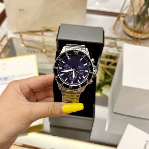 AR11360 Reloj cronógrafo de acero inoxidable de cuarzo de lujo para hombre 43mm Estilo de diseñador Cierre de mariposa analógico de negocios Artículo en stock