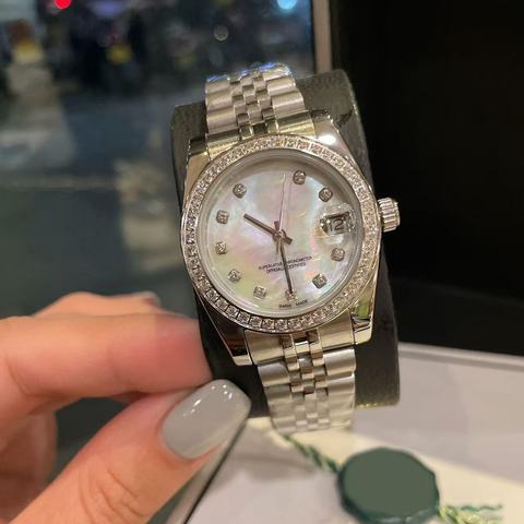 Reloj de cuarzo con puntero de esfera de cristal de 32mm de lujo para mujer, juego de correas de acero de 5 piezas, movimiento Seiko, esfera de 40mm