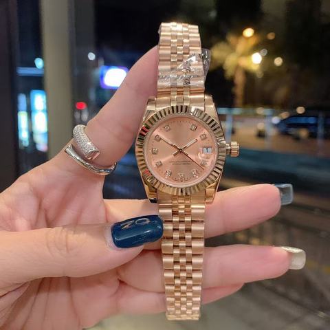 Reloj analógico de cuarzo de acero inoxidable de lujo para mujer con pulsera impermeable de oro rosa Pantalla de esfera de puntero de movimiento Ronda